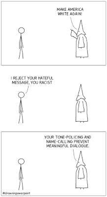 I also stand with the white working class high-school educated man who's finding that the dream he'd been sold was smoke and mirrors, a mythology, a big white lie (in more ways than one). And who is seething in rage watching both what he'd dreamed for and what he'd actually managed to accomplish slip from his grasp. That pain is very real.
